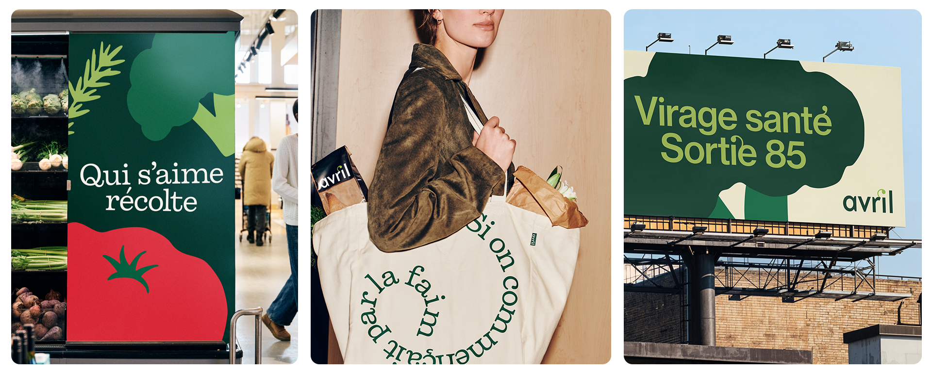 Cette volonté d’ouverture a pris la forme d’un choix identitaire fort : magnifier la pousse, l’élément graphique le plus distinctif d’Avril, pour en faire le pivot central de la marque. La pousse devient ainsi la pointe visible d’une intention : mettre en lumière les processus, les choix et l’expertise qu’Avril porte depuis toujours. Un terrain de jeu visuel et conceptuel flexible, capable d’accompagner les besoins d’affaires tout en ancrant la marque dans un univers plus ouvert, plus engageant et résolument tourné vers la progression.